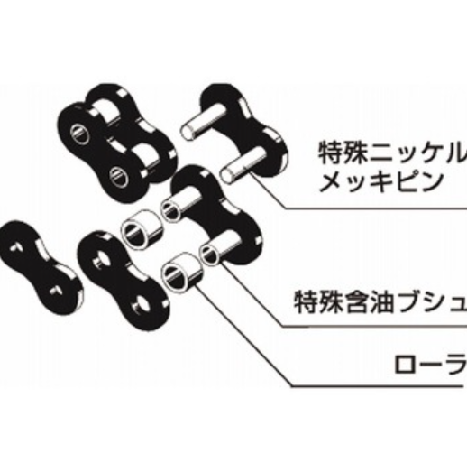 度(kN)148 チェーン形式ラムダチェーン ピン長L1(mm)25.75 ピン長L2(mm)29.95 ピン径D(mm)11.11 プレート