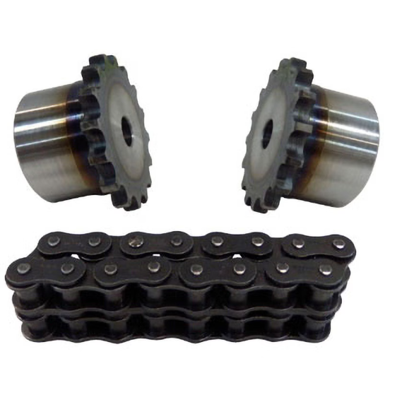 回転力は、かみ合っている強力なローラチェーンとスプロケットの表面焼入強化された歯の全部に分担され、優れた耐久力を発揮します。