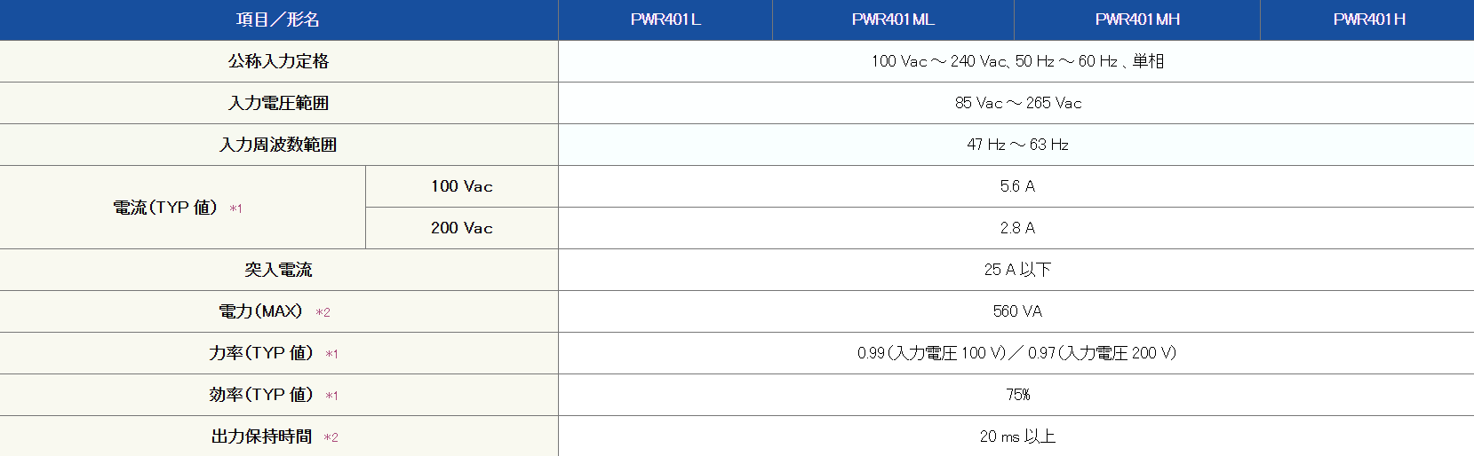 入力電源電圧はユニバーサル対応(85V〜265V)
