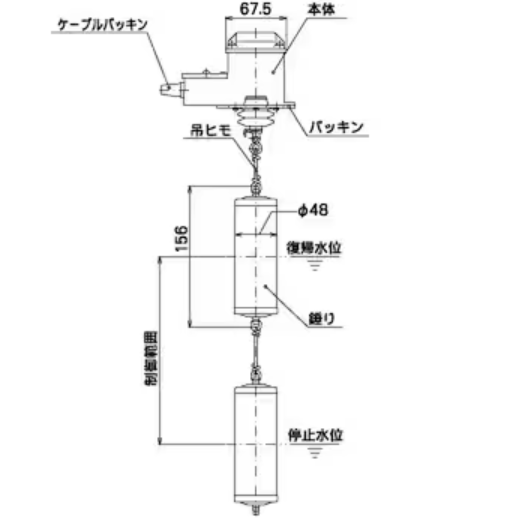成1c 材質(吊りひも)TBLR(3m)[テトロン] 用途浄水・汚水・海水など 仕様●制御範囲