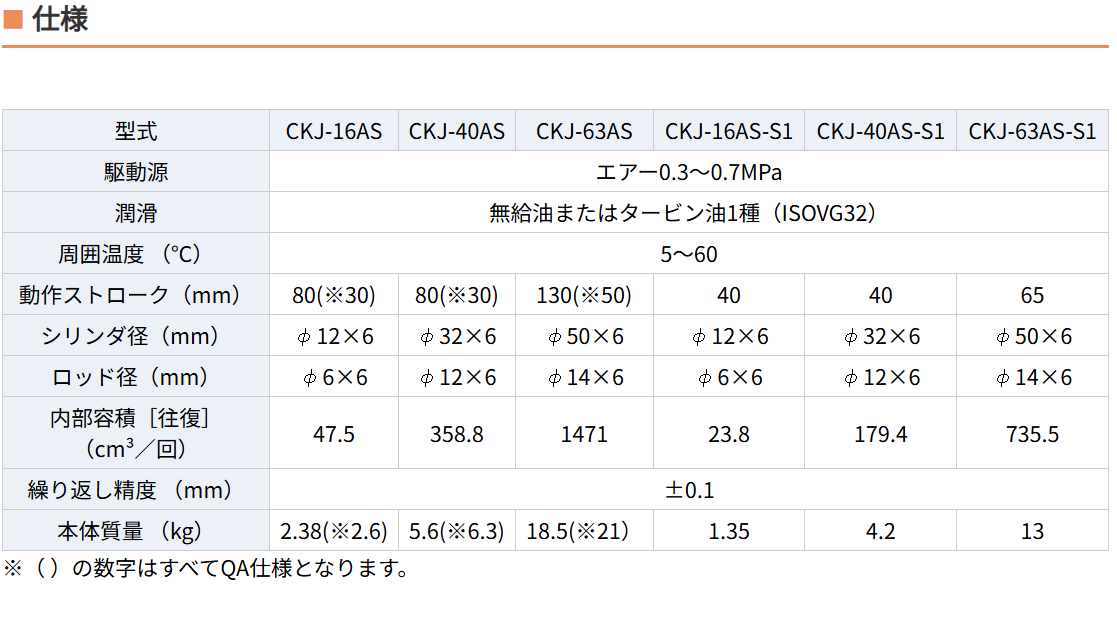 ショートストローク最適化:S1 仕様は標準 CKJ-63AS の 130mm に対し 65mm の動作ストロークとなり、高速開閉と応答性に優れる