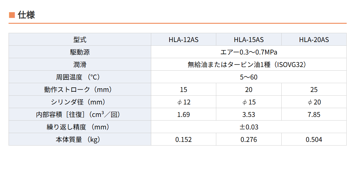 標準) 繰返し精度(mm)±0.03 使用流体エアー 爪長さ(mm)15 潤滑油無給