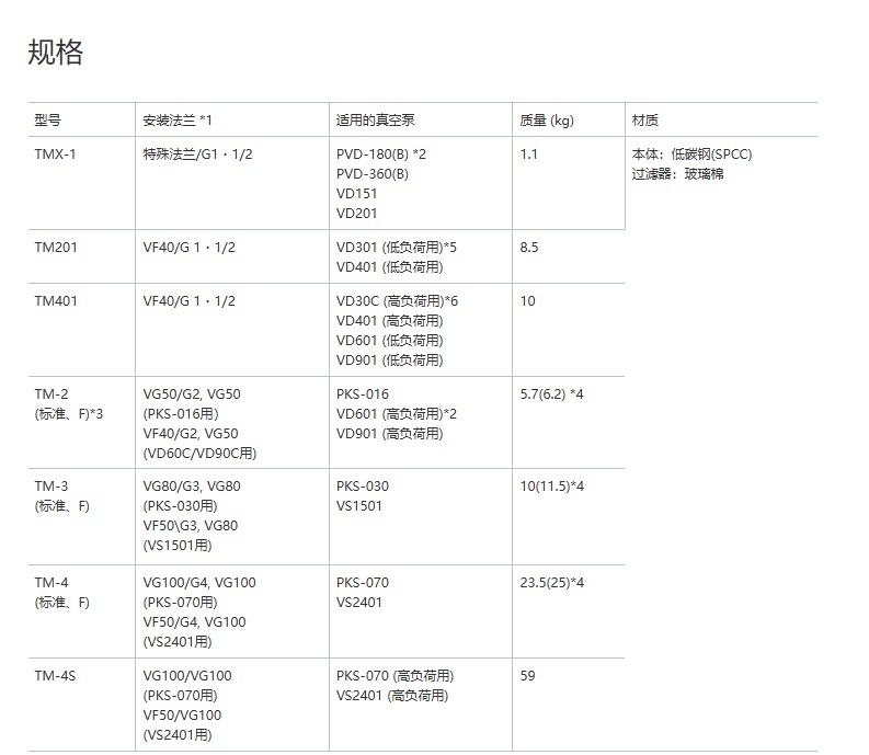 “Model:TM”非常易于安装,端口与标准应用泵的排气口相匹配。 (油回转真空泵VD60C,VD90C上安装M-2(F)时需要适配器)